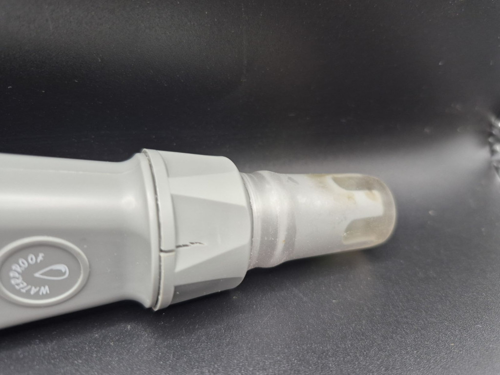 A termék tesztkészülék volt, bemutató darab, így volt használva, valamint a képek között látszik, hogy a szorító rész az elején repedt, de a használatot nem befolyásolja.